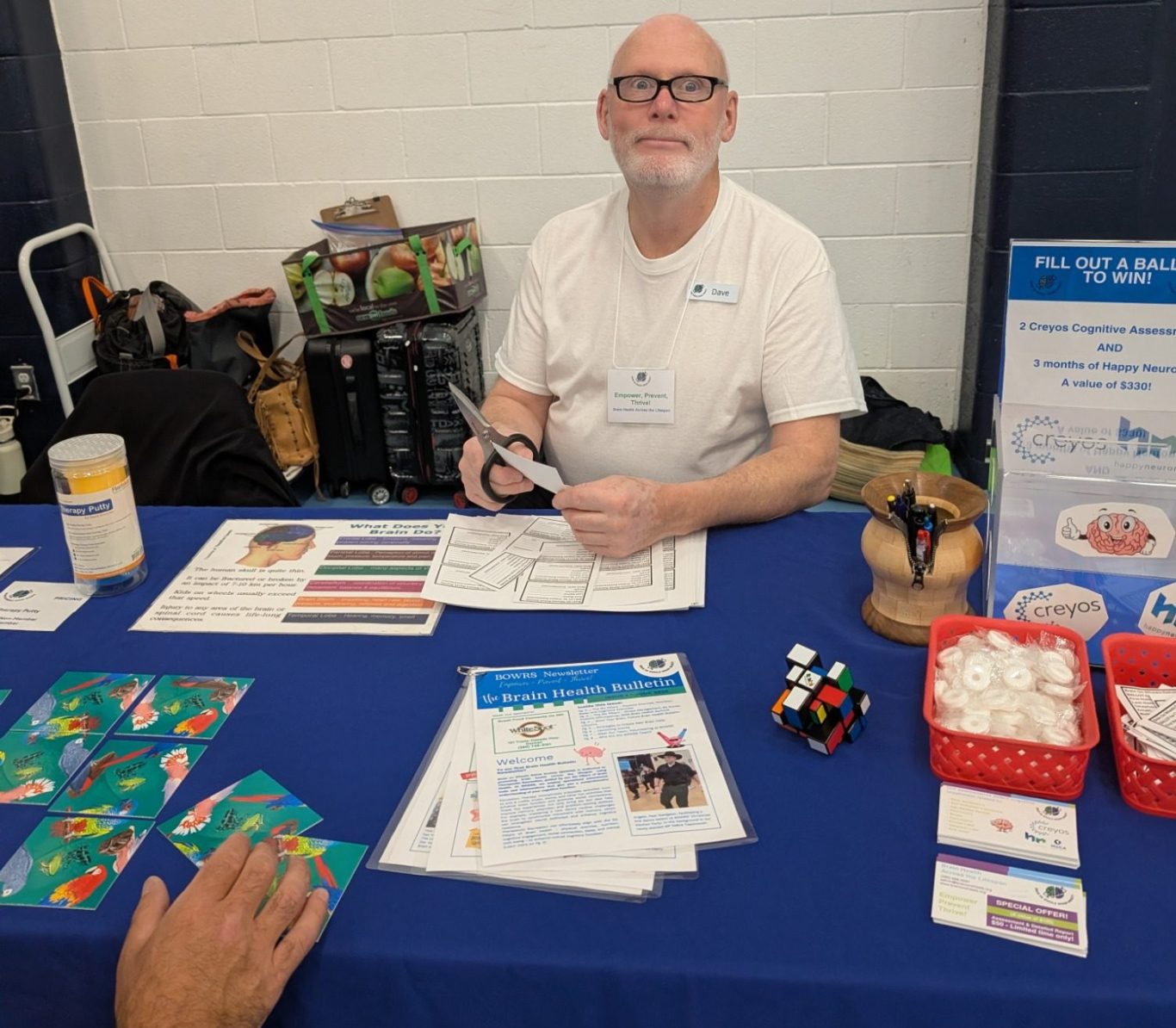 Pictured Above: Dave, a volunteer at Brain on Wheels Rehab Society, helping man our table at the Cowichan Aging Well Seniors' Expo.